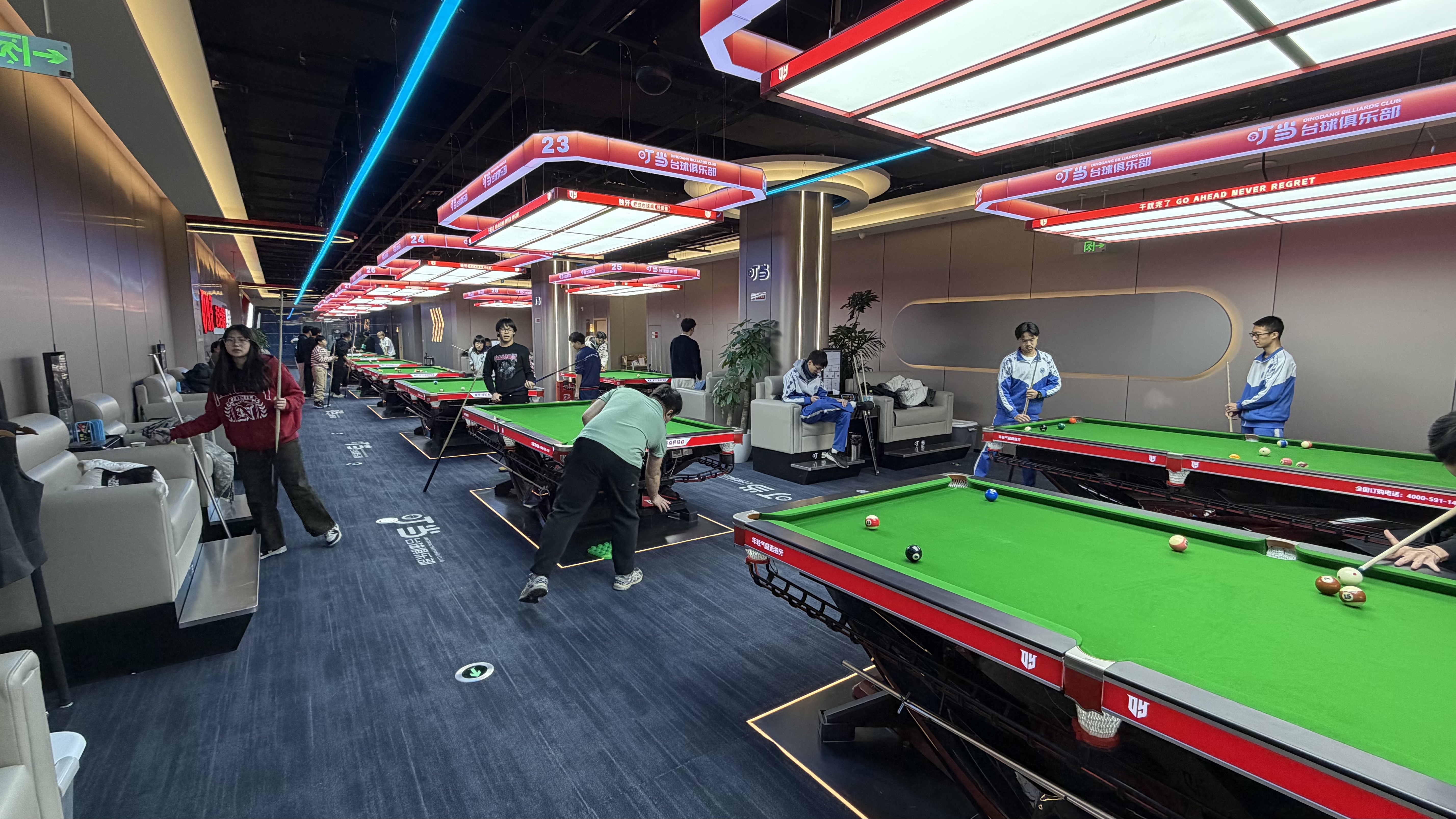 老板吕总是位资深台球爱好者,以前也是上班族,朝九晚五。这是他的第一家球房,他特别懂,大家下班后为啥还愿意来打球?喜欢,解压,爱打!“对很多人来说,下班后往球桌边一站,心思就干净了,不用想别的,就琢磨这一杆怎么进,那一球怎么打。球打出去,压力好像也跟着推出去了。”