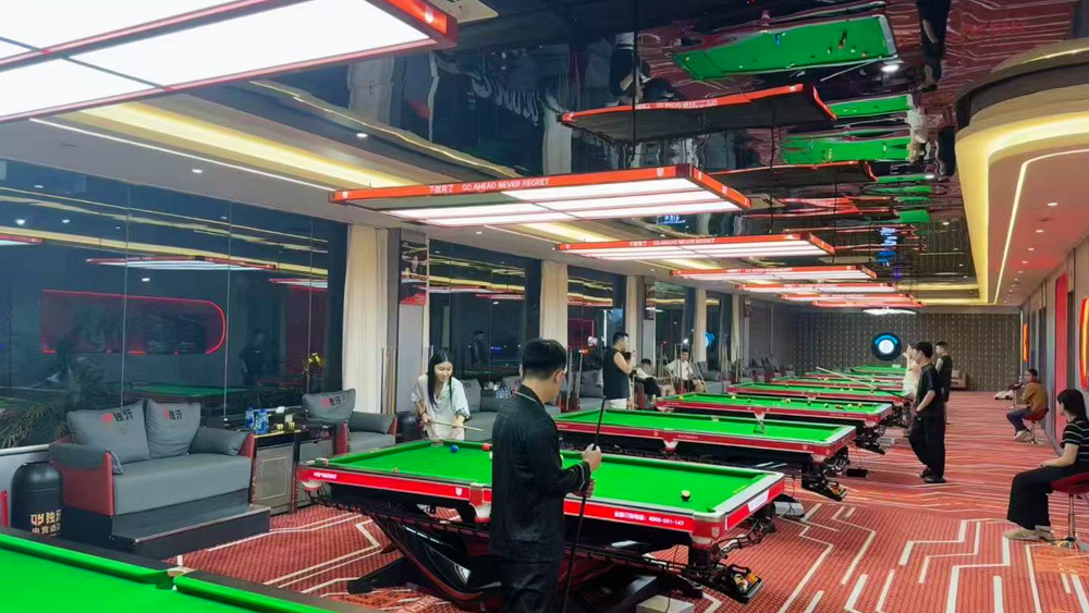 为什么选独牙?苏总不绕弯子:“设计够酷,配色够潮,和电竞就是天生一对。‘兰博金,出大金’,这句话简直就是追分玩家的嘴替。兰博金打感正、库性稳,竞技玩家都认它,而且摆在那,档次感直接拉满。”不少本地顾客看到后惊呼:“台球桌还能长这样?”